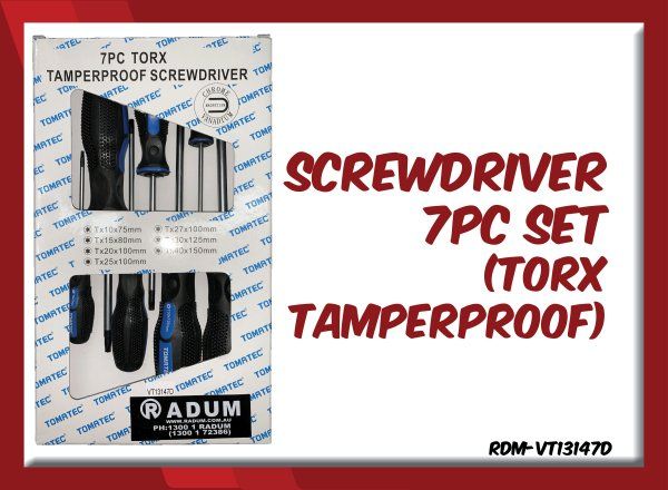 - Screwdriver 7pc Set (Torx Tamperproof)