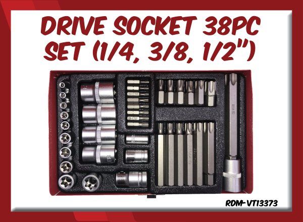 - Drive Socket 38pc Set (1/4, 3/8, 1/2")