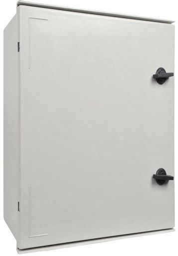 The enclosure is made with extra strong glass fibre reinforced polyester with hinged door. Resistant to grease, oil and UV light. IP66 ingress rated. Suitable for outdoor use. Grey.