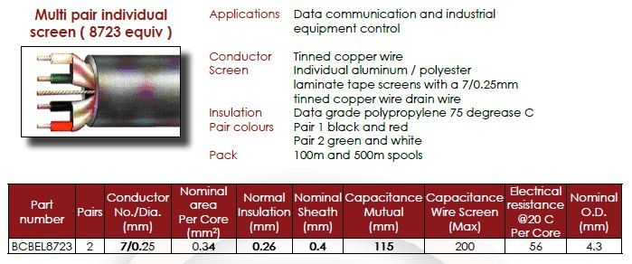 Type 2 Pair 7/0.25 Individual Screened Data Cable