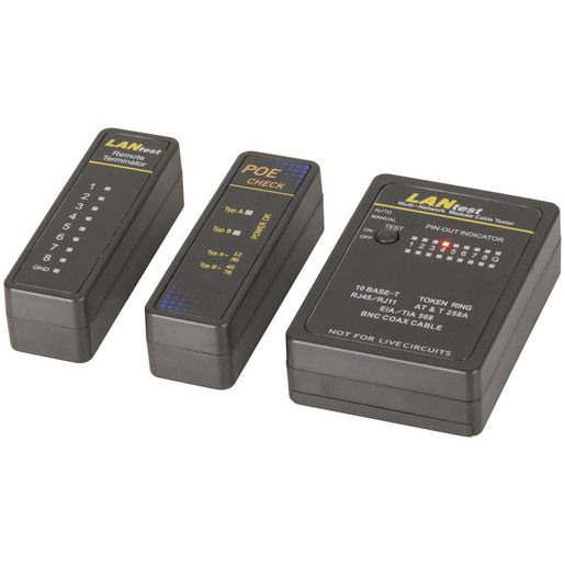 Supplied in a plastic case and with a PoE (Power-over-Ethernet) Finder that indicates if the network port or cable has power.